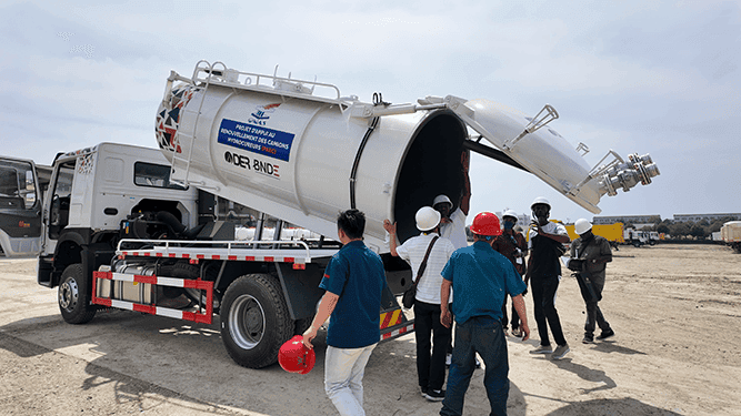 Many vacuum sewer tank trucks support hydraulic tilting of the tank and rear door opening, enabling smooth and controlled discharge of waste at treatment sites.