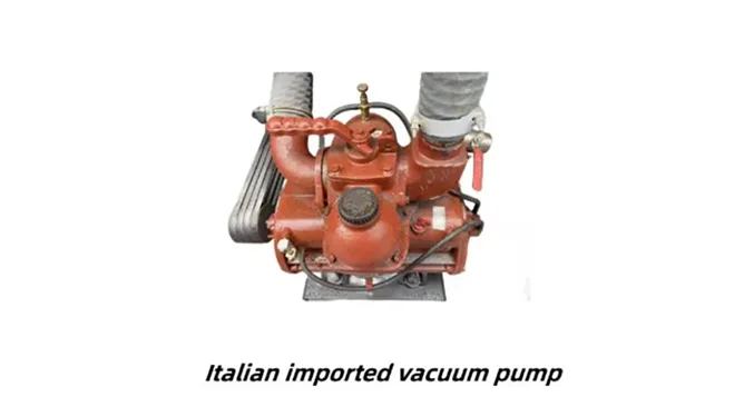 1) Suction device: adopt well-known brand vacuum pump (optional imported vacuum pump), high absolute working pressure, large flow, large suction power and long suction distance.