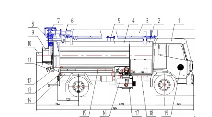 | Others | Protective device | Protective railings are installed on both sides and the rear of the tank; Material: Q235B carbon steel Rear mudguard: Metal mudguard, material: Q235B carbon steel |