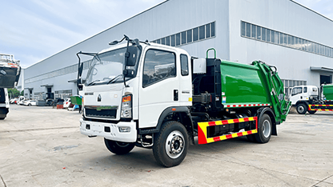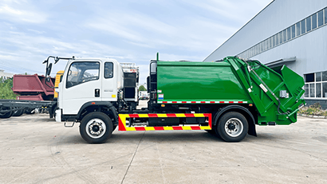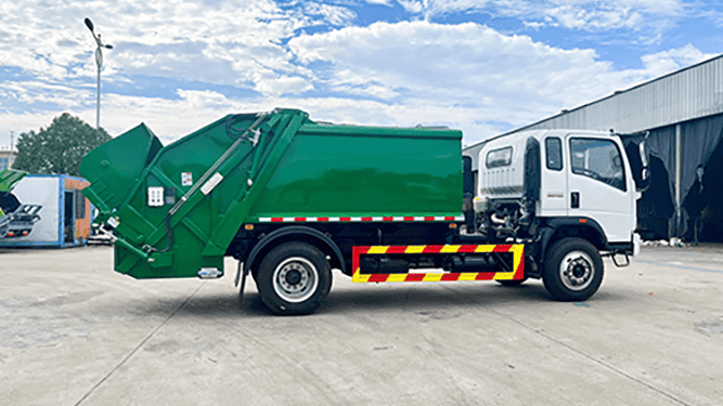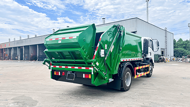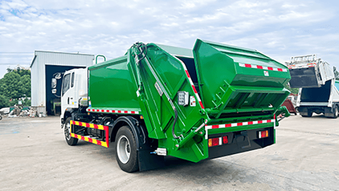A 4×2 Garbage Truck with Hydraulic Compactor is a municipal waste collection vehicle designed to collect, compress, transport, and dispose of solid waste efficiently. It combines a sealed refuse body, a hydraulic compaction system, and an operating control system to compress waste — allowing the truck to carry more garbage per trip and reduce the number of disposal cycles.