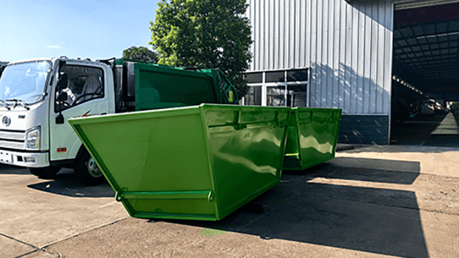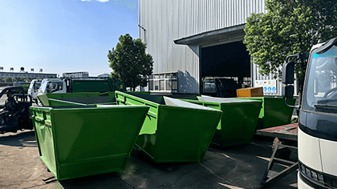 3.Waste Container: This 5-cubic-metre waste container is specifically designed for use with hook lift trucks. Constructed from 3mm-thick side panels and 4mm-thick base plates of reinforced steel, it undergoes multiple layers of electrophoretic coating for corrosion resistance, ensuring robust durability and exceptional durability. Its structure precisely matches the hook lift mechanism, guaranteeing stable and efficient loading and unloading operations. Suitable for diverse environmental sanitation scenarios, it serves as a reliable assistant for enhancing waste collection and transportation efficiency.