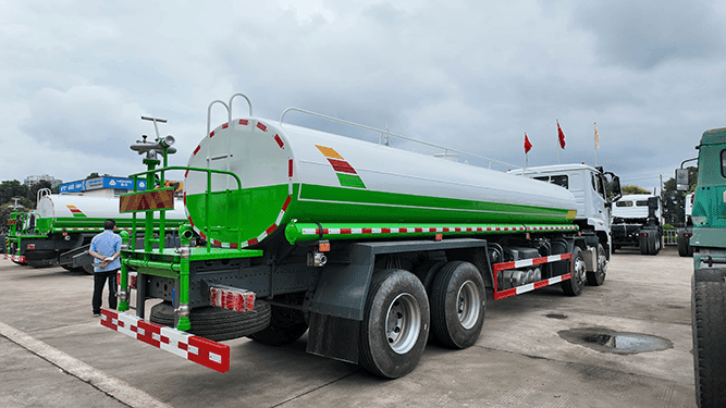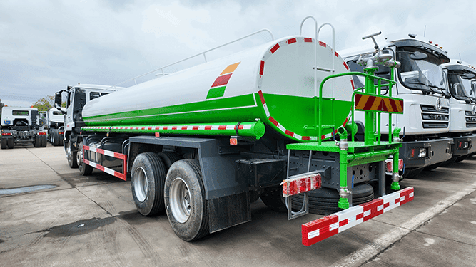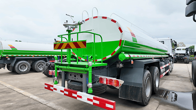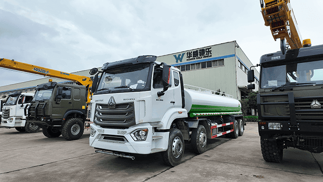 The HOWO NX 8×4 Water Tank Truck is widely used in municipal sanitation, road maintenance, and construction projects. It is suitable for road washing, dust suppression, and daily cleaning of urban roads, highways, and industrial areas. The truck is also ideal for watering trees, green belts, lawns, and public landscaping. With multiple spraying modes such as front flushing, rear spraying, side spraying, and high-position spraying, it can adapt to different working requirements and environments. In construction sites, mining areas, and newly paved roads, the water tanker effectively reduces dust, improves air quality, and supports surface curing and maintenance. It can also be used for water supply in industrial parks and work zones.