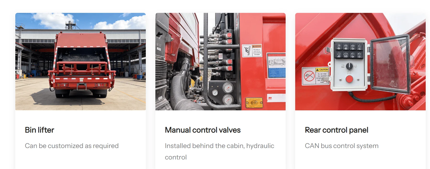 5. For the rear part for compactor truck, you can choose standard type, or with sealed cover, or with a floor-level hopper