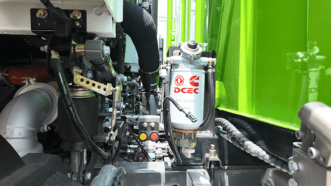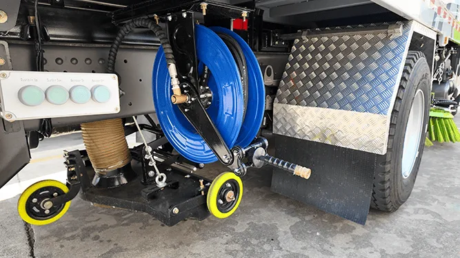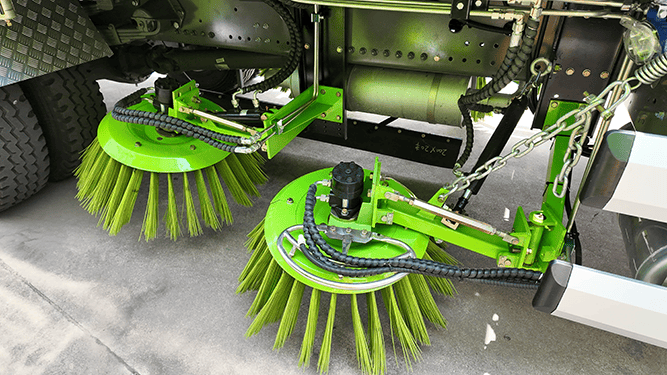 The sweeper’s hydraulic system powers brush rotation, lifting mechanisms, and suction functions with smooth, reliable performance — enhancing cleaning efficiency and ease of use.
