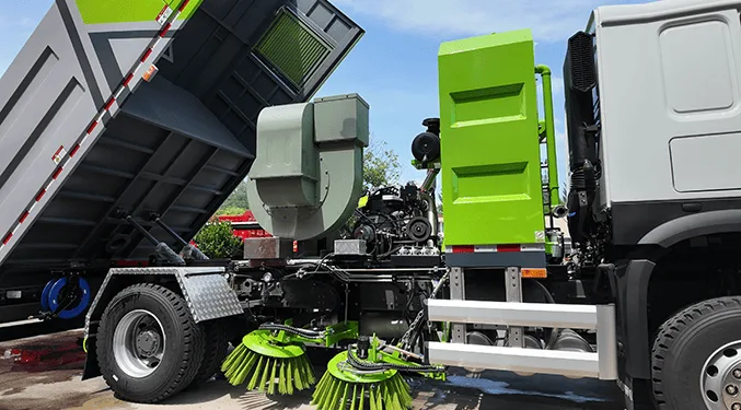 Equipped with a high-efficiency sweeping and suction system that combines front spray, side brushes, a central brush assembly, and a rear vacuum suction nozzle to remove dirt, debris, and dust from road surfaces with excellent cleaning coverage.