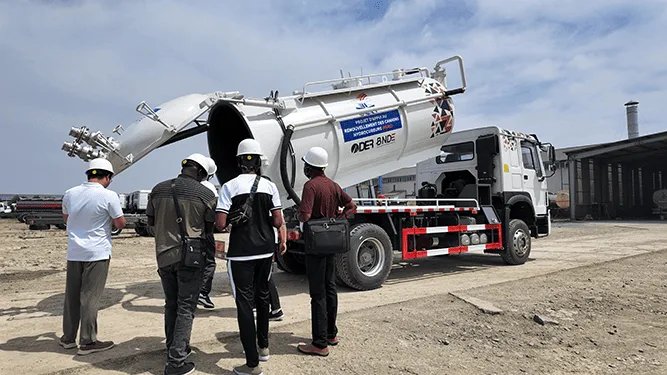Many vacuum sewer tank trucks support hydraulic tilting of the tank and rear door opening, enabling smooth and controlled discharge of waste at treatment sites.